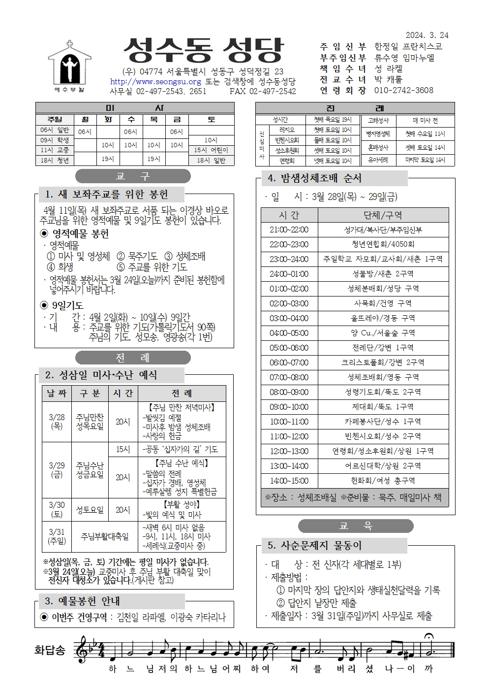 미사 및 성사 안내